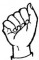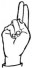 На ћирилици написано АЛЕКСА БУЋИНАЦ састоји се из 13 слова [?]. Исписано ћириличном једноручном азбуком за глувонеме: